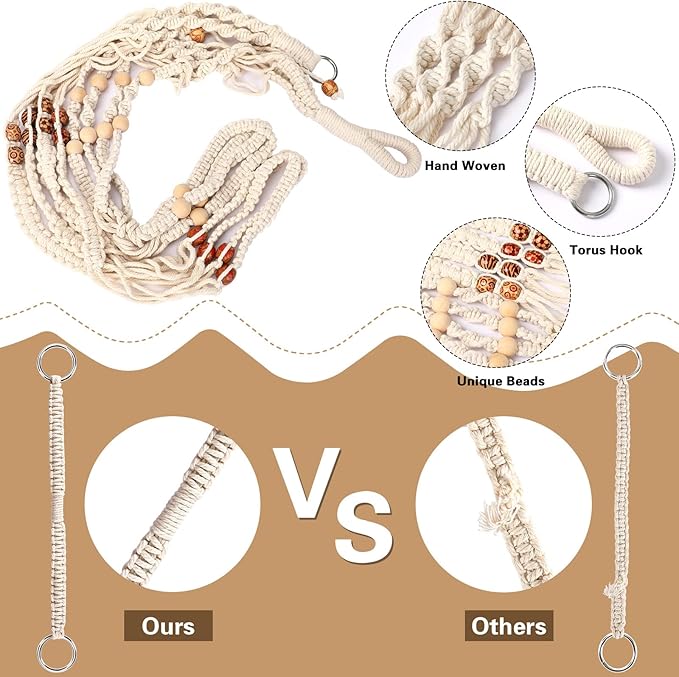 • Durable Cotton Rope Construction: Made from natural cotton rope for sturdy and long-lasting use.
