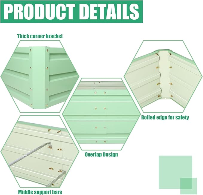 • DURABLE MATERAL: Made of stable thickened galvanized metal, make the raised bed more textured and beautiful.