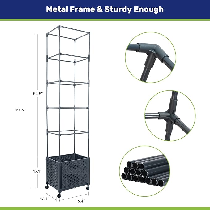- Premium Material Selected: Made of fade-proof and food-grade safe reinforced PP material, this planter box is durable for all-weather use. The trellis frame is designed with sturdy alloy steel for durability and minimal maintenance. Widely used outdoors to decorate with your favorite plants