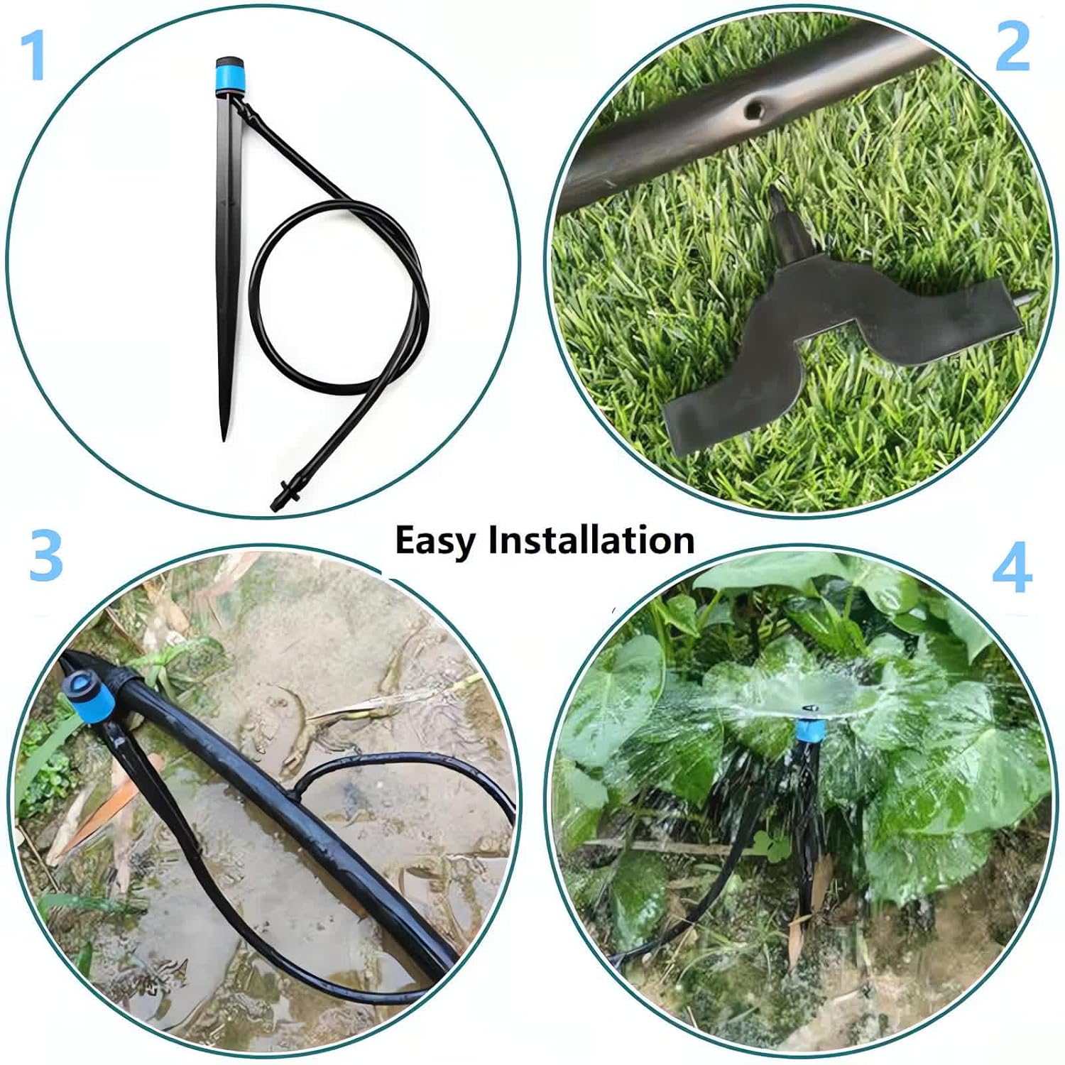 - Unique Design: The ground stake drip irrigation emitters vortex can be connected with 1/4 inch hose and inserted near the planting. Full circle drip emitter spray emitter with fine water droplets,also has beauty landscape