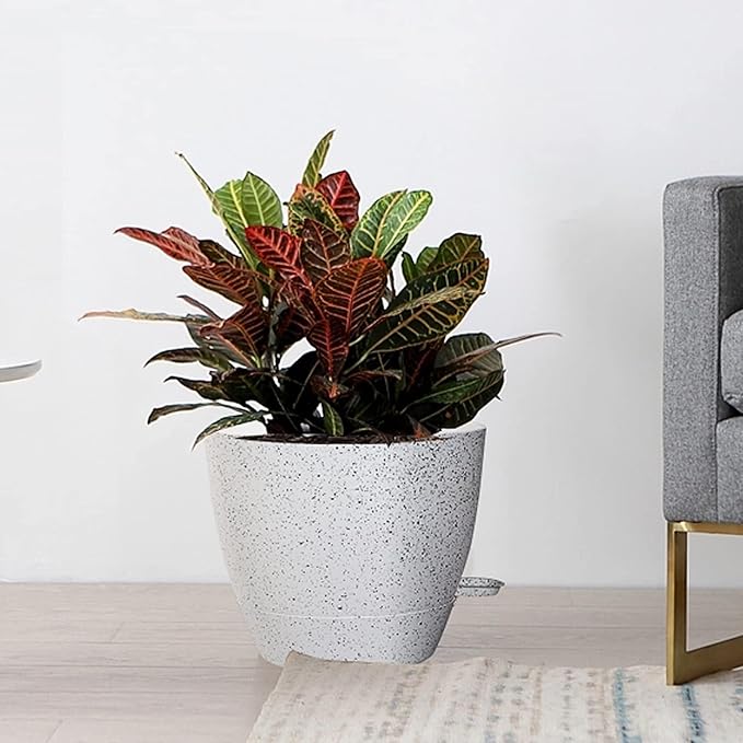 10/9/8 inch Self Watering Pots, Set of 3 Plastic Planters with Mesh Drainage Holes and Deep Reservoir for Indoor Outdoor Garden Plants and Flowers, White Speckles