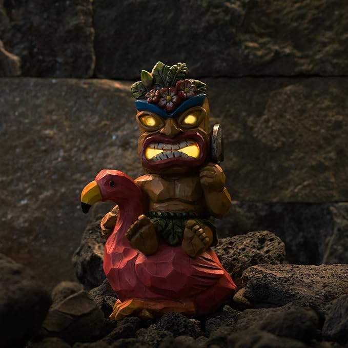 Solar Tiki Statue Flamingos Decor - Tiki Decorations Outdoor for Bar, Patio, Balcony, Yard,Lawn Ornament