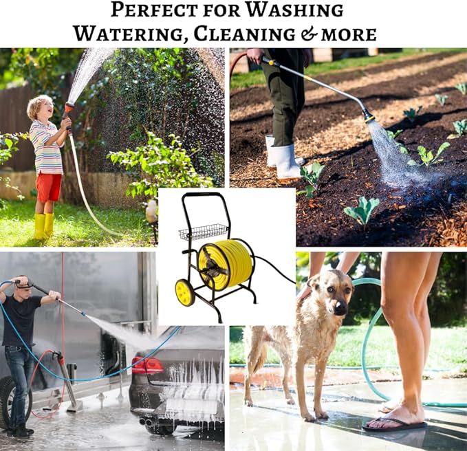 - Upgrade your gardening experience with our 200ft 2-Wheel Hose Reel Cart, designed to make heavy-duty watering tasks a breeze. Whether you're maintaining a large lawn, landscaping a professional property, or simply keeping your garden in top shape, this cart delivers reliability, durability, and convenience.