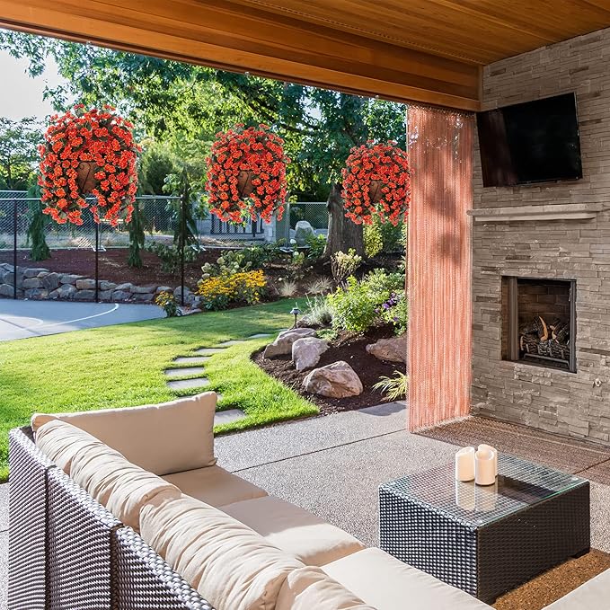 Hanging Baskets Artificial Flowers for Outdoor Interior Decor, Artificial Daisies Flowers Shrubs Plants with Baskets for Home Porch Garden Patio Patio Spring Summer Decor(Orange)