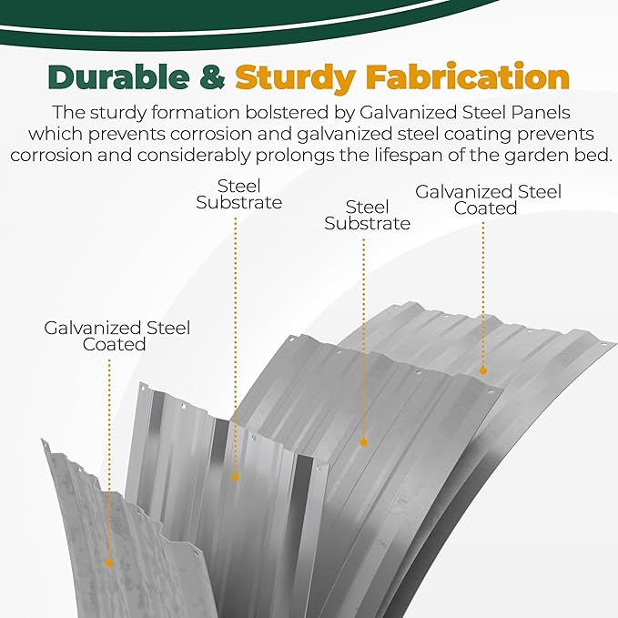 - Lightweight Galvanized Steel- The outdoor raised garden beds are made from lightweight galvanized steel, ensuring exceptional longevity and durability. Also, it prevents it from corrosion and rust, offering a long-lasting gardening solution. Moreover, the middle support strip provided exceptional strength to our lightweight Galvanized Raised Garden Bed.