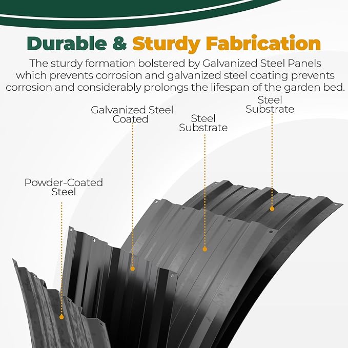 - Lightweight Galvanized Steel - The outdoor raised garden beds are made from lightweight galvanized steel, ensuring exceptional longevity and durability. Also, it prevents it from corrosion and rust, offering a long-lasting gardening solution. Moreover, the middle support strip provided exceptional strength to our lightweight Galvanized Raised Garden Bed.