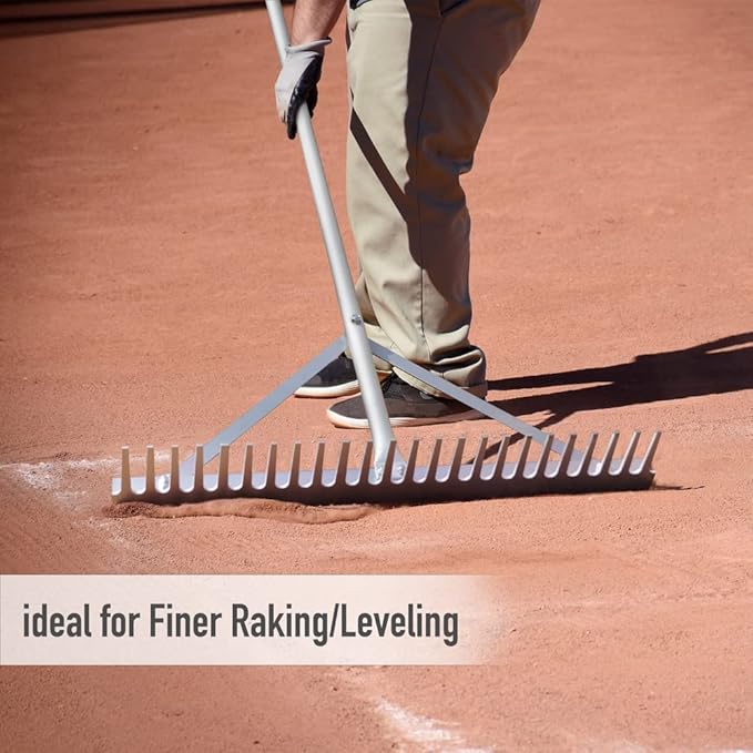 - LIGHT AND MIGHTY LANDSCAPE RAKE -- this 24ββ landscape rake is made of professional grade high-quality aluminum. All solid aluminum head and handle are sturdy, durable, and rustproof, which will last throughout the seasons.