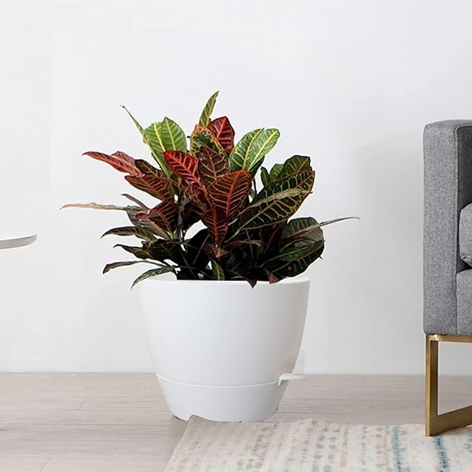 • Self Watering Pots: Set of 3 plastic planters with mesh drainage holes and deep reservoir for indoor outdoor garden plants and flowers