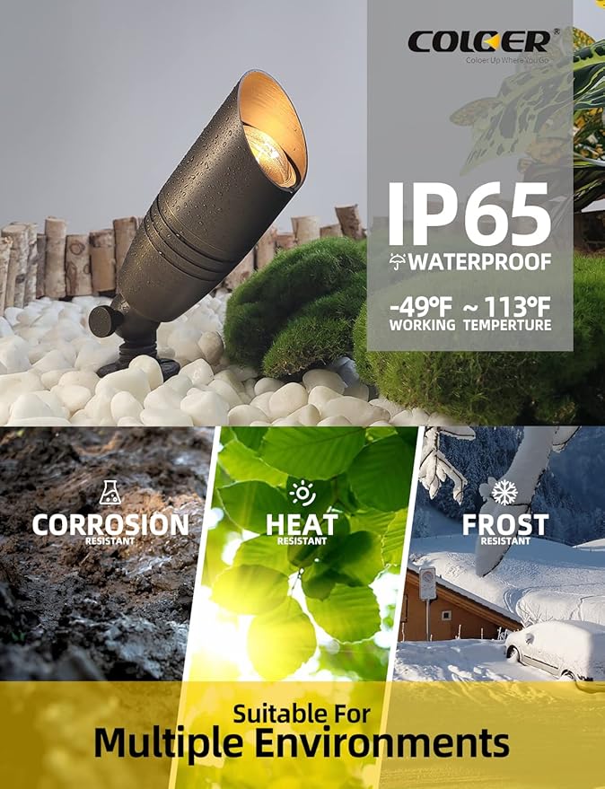 - Lifetime Warranty: The COLOER landscape spotlight uses a design with separate light fixture and bulb, which offers a longer lifespan compared to the non-detachable integrated design.You can replace the bulb without having to replace the entire fixture just because the bulb is broken.We offer a lifetime warranty on the brass light fixture and 5 years for the led bulb. We stand behind our product with our top-rated customer service. Please don't hesitate to contact us if you have any issues.