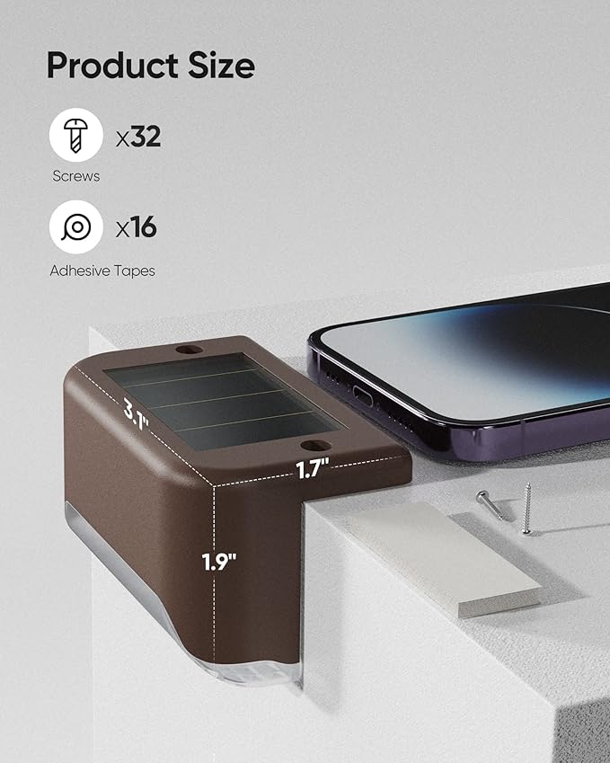 - Easy to Install: Screws and adhesive tapes are included. If you don't want to drill holes in the deck rail, secure the solar lights with adhesive tapes.