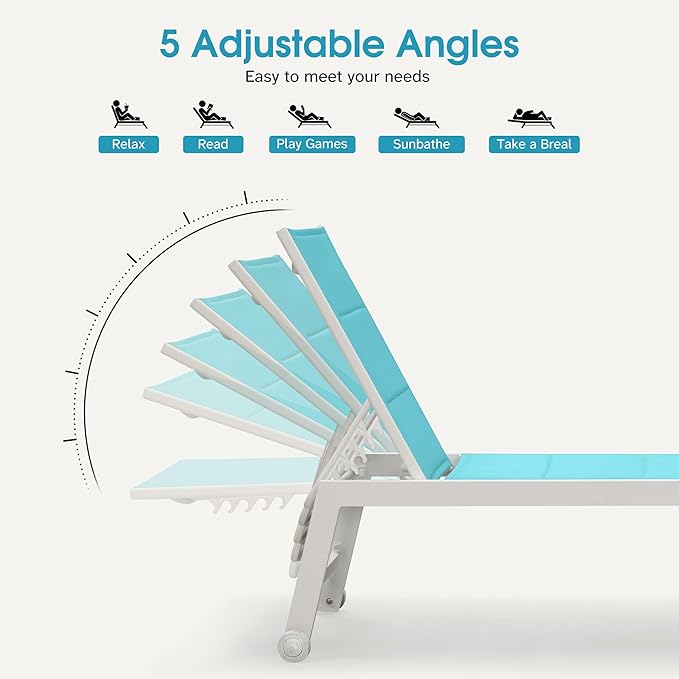 - 5 Angles for Your Choice: This lounge chair is equipped with a 5-level adjustable backrest, which allows you to easily get the right angle for different needs.