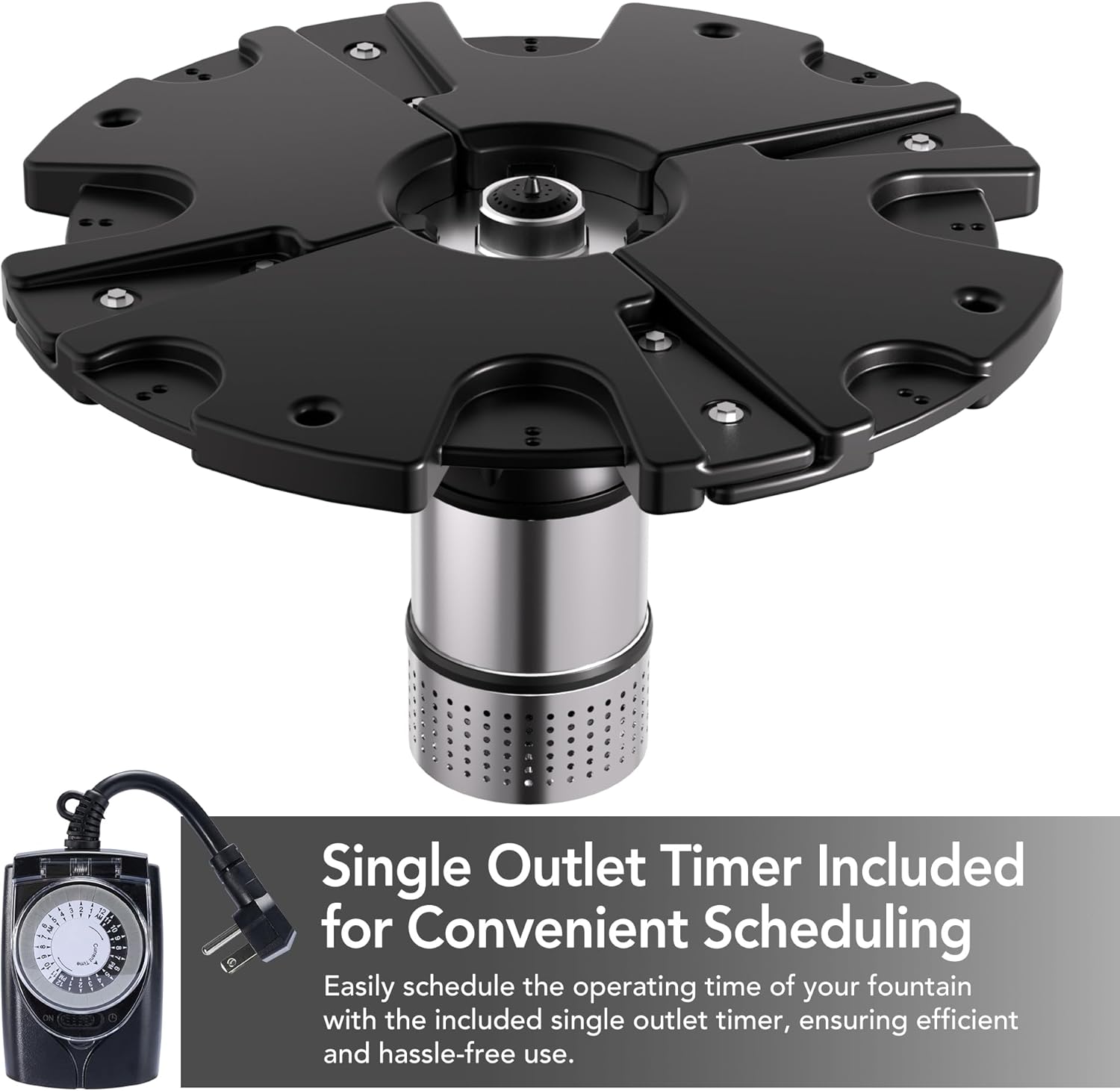- Symmetrical design and High Buoyancy, 0% chance sinking, Super Safe and Stable. One outlet timer included.