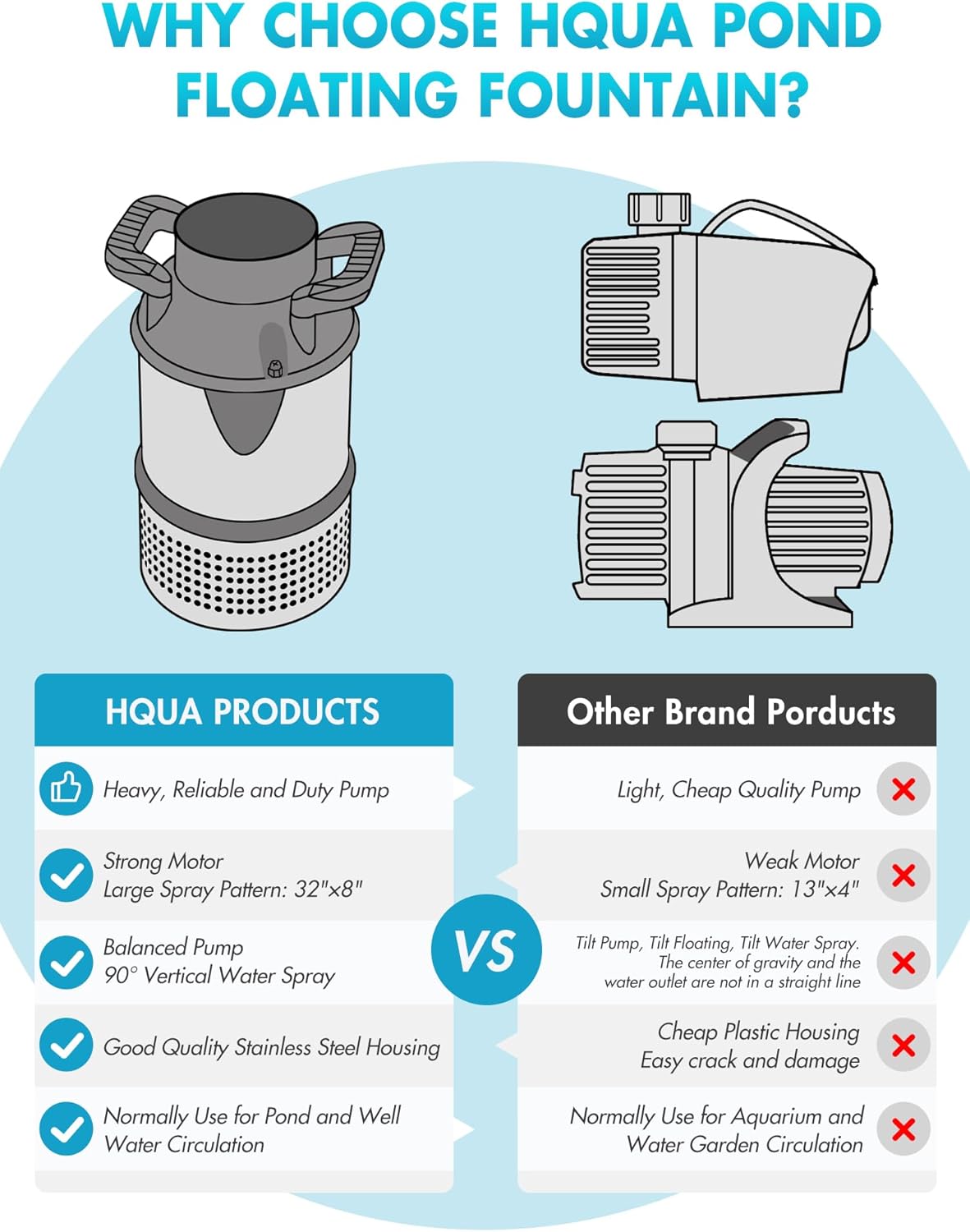 - Good Quality, Oil-free, Maintenance-free Stainless Steel 1/2 HP Pump, Reliable, Durable and Anti-Corrosion, 13000 GPH High Flow.
