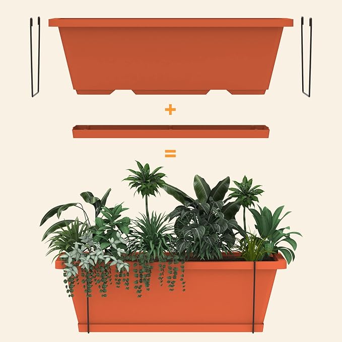 - 【Raised Planter Box】Each plastic planter bins consists of bottom drainage holes and removable tray. Excess water can be drained to ensure that the soil can breathe, thus promoting the growth of plants. (Dimension: 16.8 x 6.8 inches)