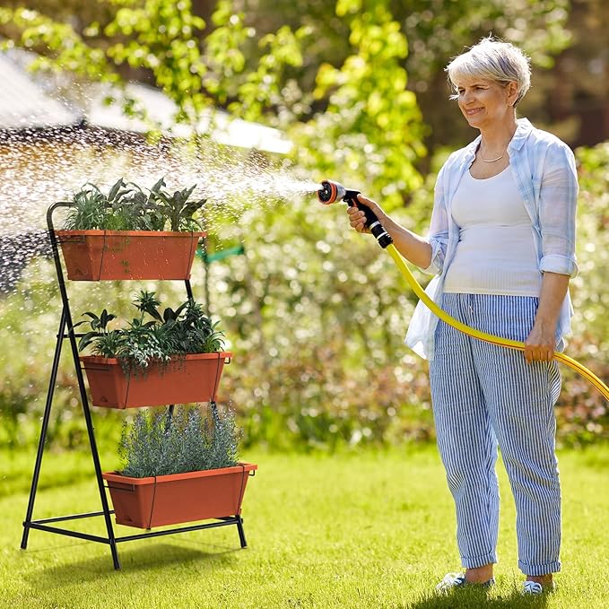 Vertical Raised Garden Bed 3 Tier Elevated Garden Planters Standing Planter Box Outdoor and Indoor for Plants Herbs Flowers Vegetables Brick Red