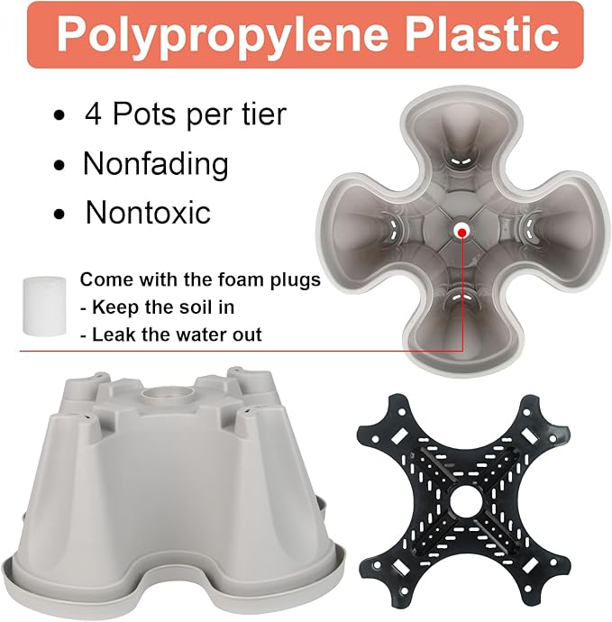 - SOIL HOLDING BOARD - Each tier has a board that holds soil while allowing water to drain down.
