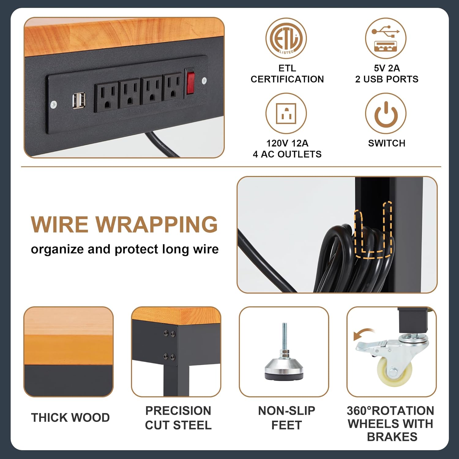 - Solid Rubber Wood & Steel Frame: Solid wood for tabletop supporting longer service time; Precision cut steel holds a high load bearing capacity max 2000 lbs, ideal for projects gardening and car repair, such as hitting, dyeing, drilling and cutting
