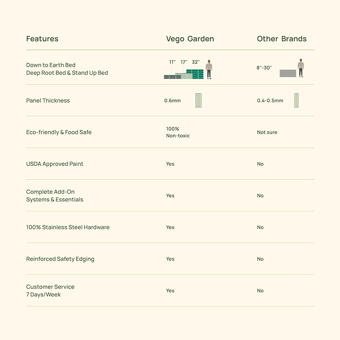 - Complete System: From the very beginning, Vego Garden has aimed to create unified gardening systems that start outside, in your garden, and extend all the way into your day-to-day today life. The team continues to develop more products and add-ons that enhance the Vego experience, such as cover system, worm composters, arched trellis, wall trellis, seeding trays and gopher net and so on. Beyond the physical product, education and community are an integral part of the Vego Garden system, we will continue to strive for these values from design to customer