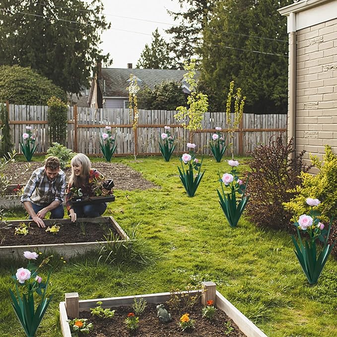 • Both stem and leaves are supported by wire for superior flexibility and durability. These flower bed decorations will bring you outdoor decorating solutions with solar garden lights. Suitable for planting near trees, flower beds, fences, cemeteries, graves and walkways.