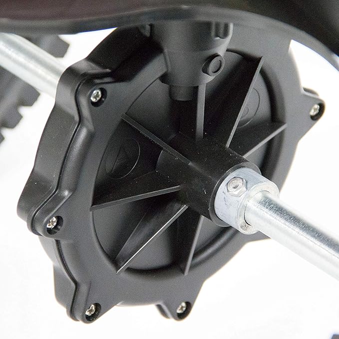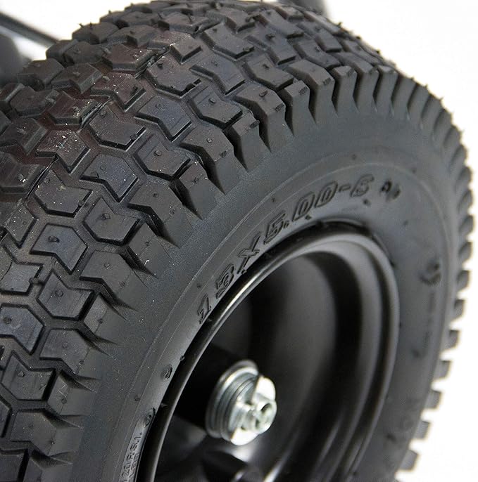 • TIRES AND ACCESSORIES: 12-inch pneumatic, wide-tread tires move over uneven ground; rain/snow cover and grate included