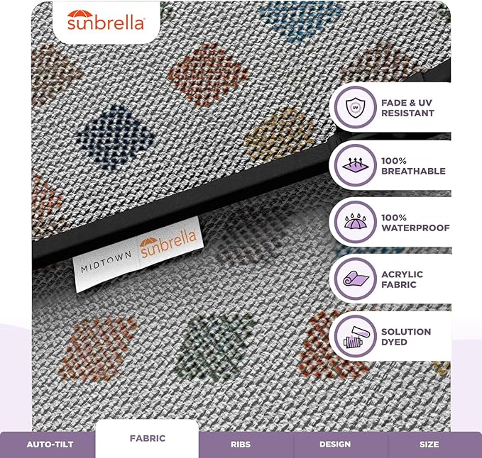 Midtown Umbrellas Sunbrella Umbrella 9 Feet Outdoor Umbrella With Infused Gem Acrylic Fabric - Auto-Tilt Aluminum Frame Patio Umbrella For Backyard, Deck, Garden, Pool - Black Pole