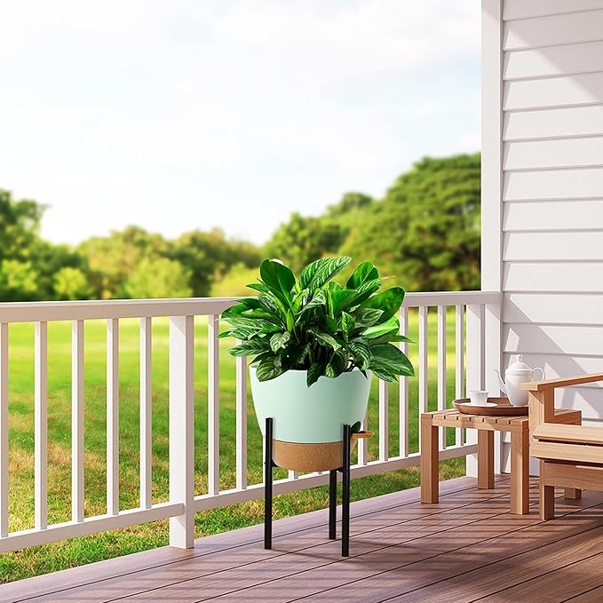 • Decorative Container: Modern round plastic planter with solid green and brown color is suitable for indoor or outdoor gardening and decor
