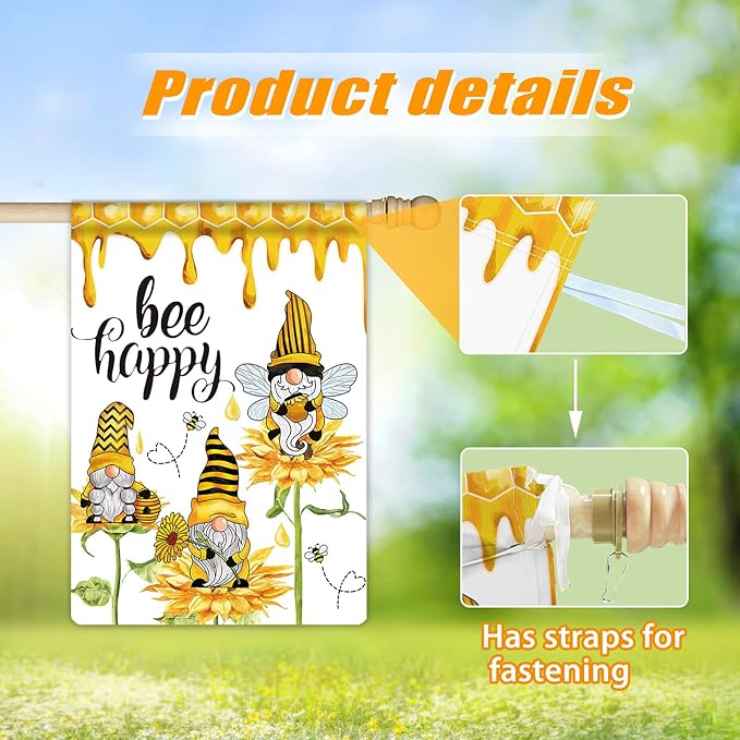 - šVIVID and COLORFUL PATTERNS: The designer's elaborate pattern is double sided printed on the burlap.Including Spring,Valentine's Day,Mardi Gras,St. Patrick's Day,Easter,Bee Happy,Summer,Independence Day,Fall,Halloween,Christmas,Winter Garden Flag. Every pattern and color on the house flag has been scrutinized.