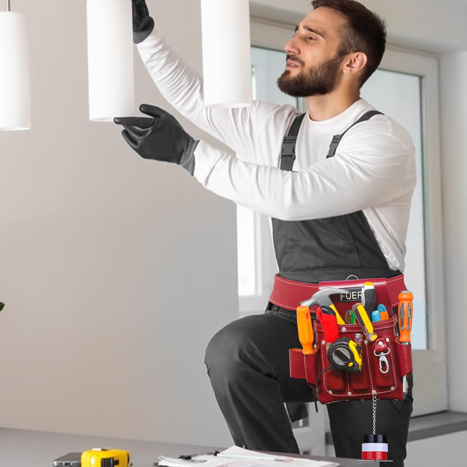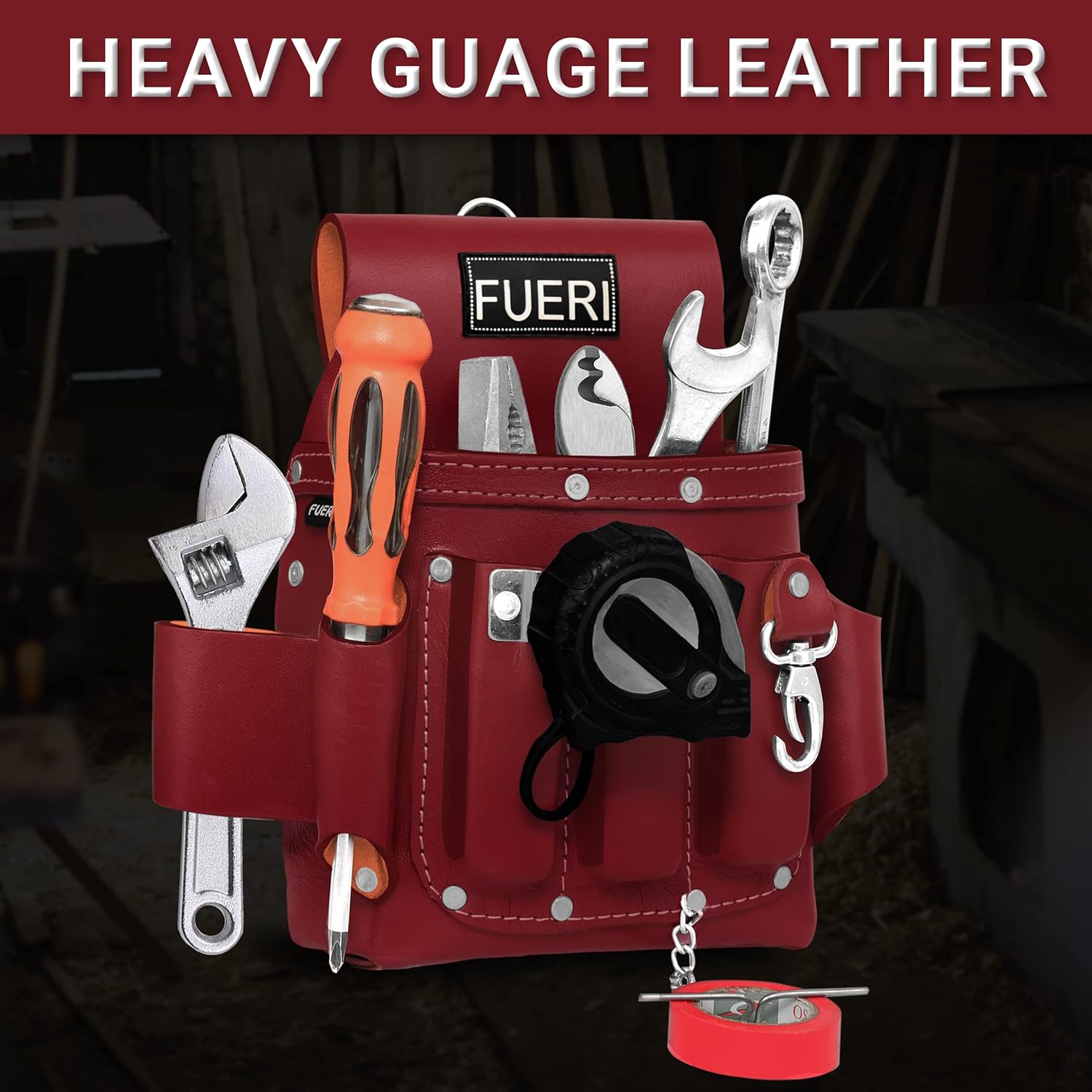 - Built to Last: FUERI has enhanced the 4-pocket electrician tool pouch, making it one of the most durable options available. Crafted from professional-grade heavy-duty leather with riveted reinforcement, this pouch withstands years of wear and tear. Designed to resist damage from sharp tools, it is ideal for carpenters, electricians, and gardeners.