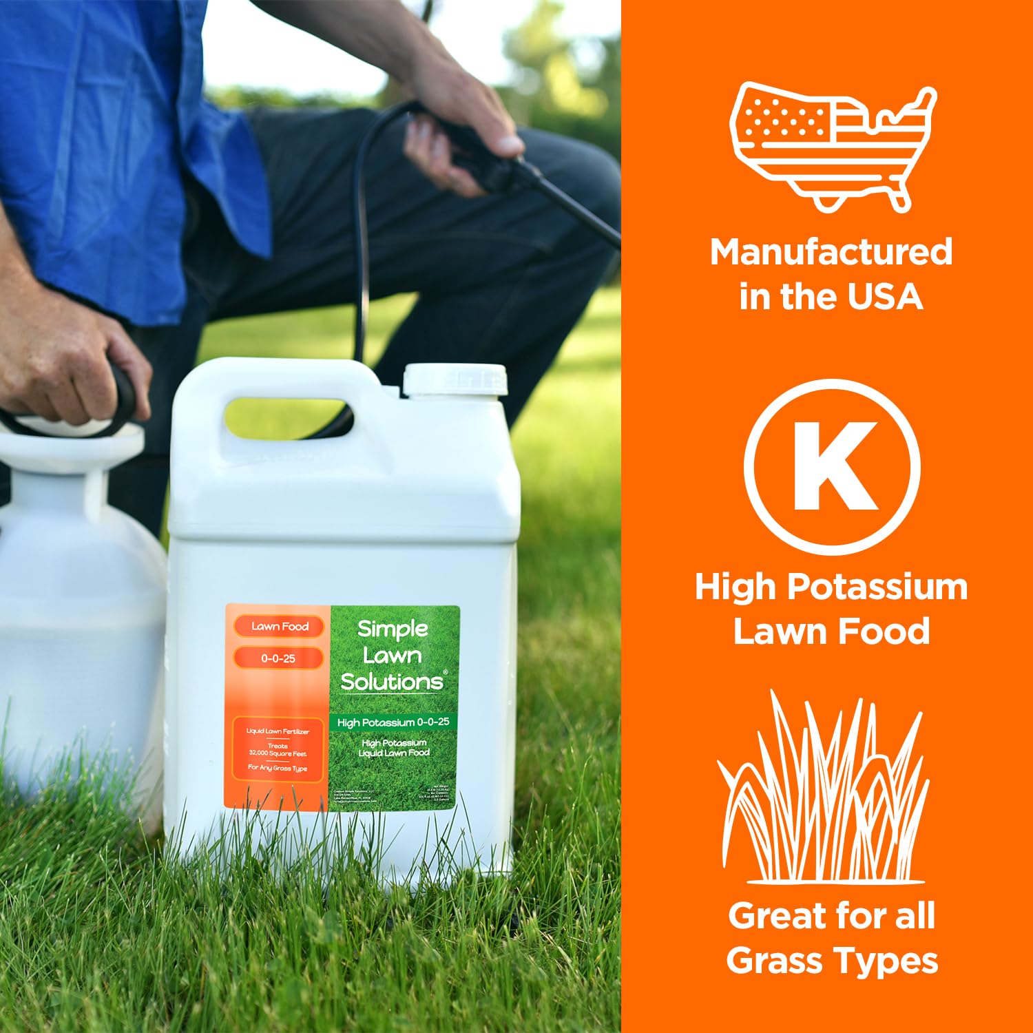 Simple Lawn Solutions - High Potassium Lawn Food Liquid Fertilizer 0-0-25 - Concentrated Spray - Turf Grass Vigor and Plant Hardiness - Summer and Fall - Any Grass Type (2.5 Gallon)