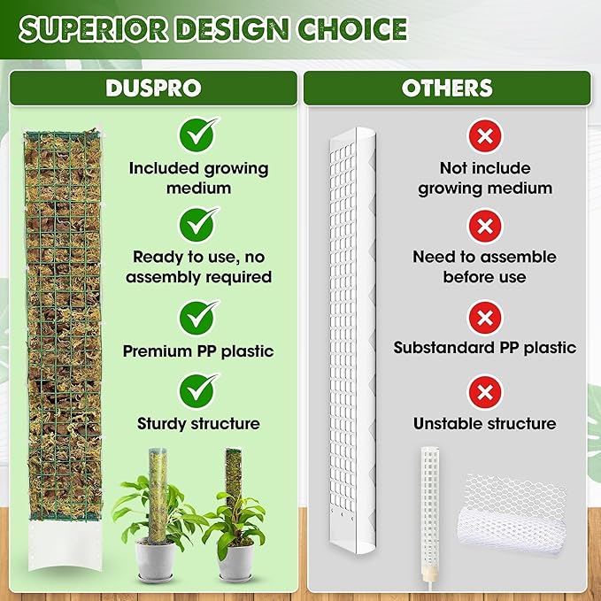 - πΏβ¨ππ π πππππππ ππππππππππππ: Our moss pole is designed for ultimate convenience, allowing you to set it up within minutes without the need to manually covered moss into moss pole. Simply insert it into the soil, position your climbing plant towards the mesh side, secure the plant stems to the pole, and water it for vibrant growth.