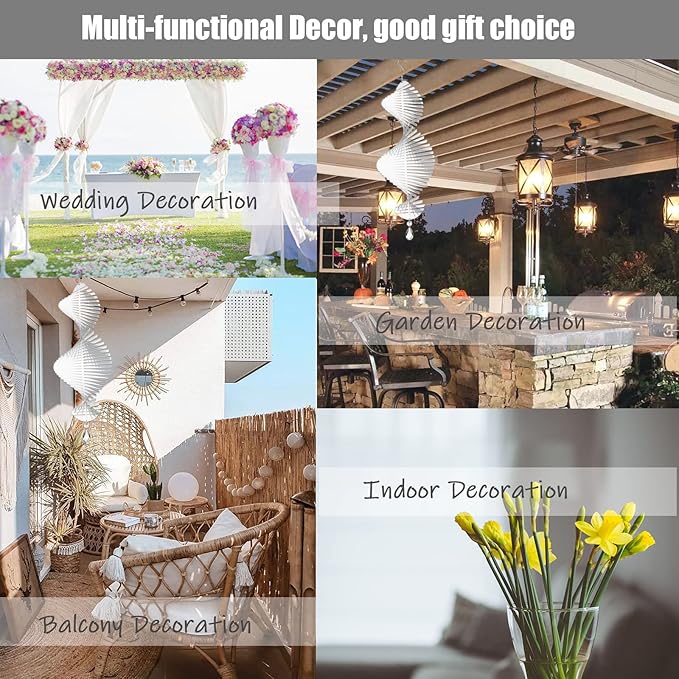 - 【Easy Assemble and Hang】 With easy to follow instructions for installation, no additional tools are necessary. Just pull and tweak to fan out the sections evenly. Simply hang the wind spinner in a location which catches the breeze and enjoy the kinetic movement of our outdoor wind spinners in the slightest of breeze. Designed with a hole on the bottom edge, you can hang some pendants and accessories according to your preferences.