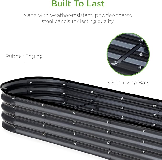Best Choice Products 8x2x1ft Outdoor Metal Raised Garden Bed, Oval Deep Root Planter Box for Vegetables, Flowers, Herbs, and Succulents w/ 108 Gallon Capacity - Charcoal