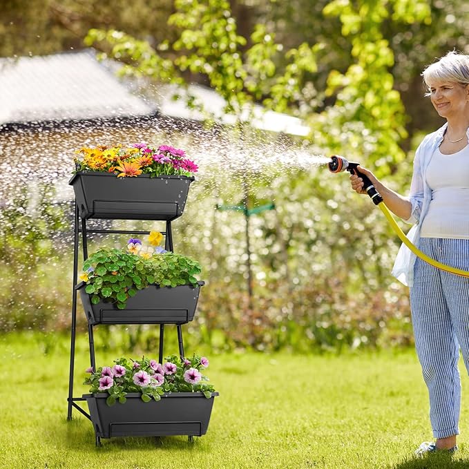 - 【Sturdy and Stable】The vertical raised garden bed are made of high-quality metal, and the bottom is supported by stable triangles to ensure that the planter stand remains stable in wind and rain. Whether it is used indoors or outdoors, it is a good choice.