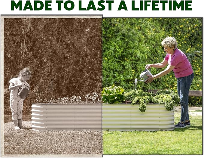 - BUILT TO LAST- The Plant & Plot garden bed is treated to withstand everyday wear and tear due to its 0.6mm thick, galvanized metal sheets and a highly durable zinc coating. Our prime materials ensure the garden bed is sturdy and maintains its shape over time. From heavy rain to extreme heat, we made sure to protect your garden bed from rust and corrosion, so it's the perfect choice if you're looking for a long-lasting solution.