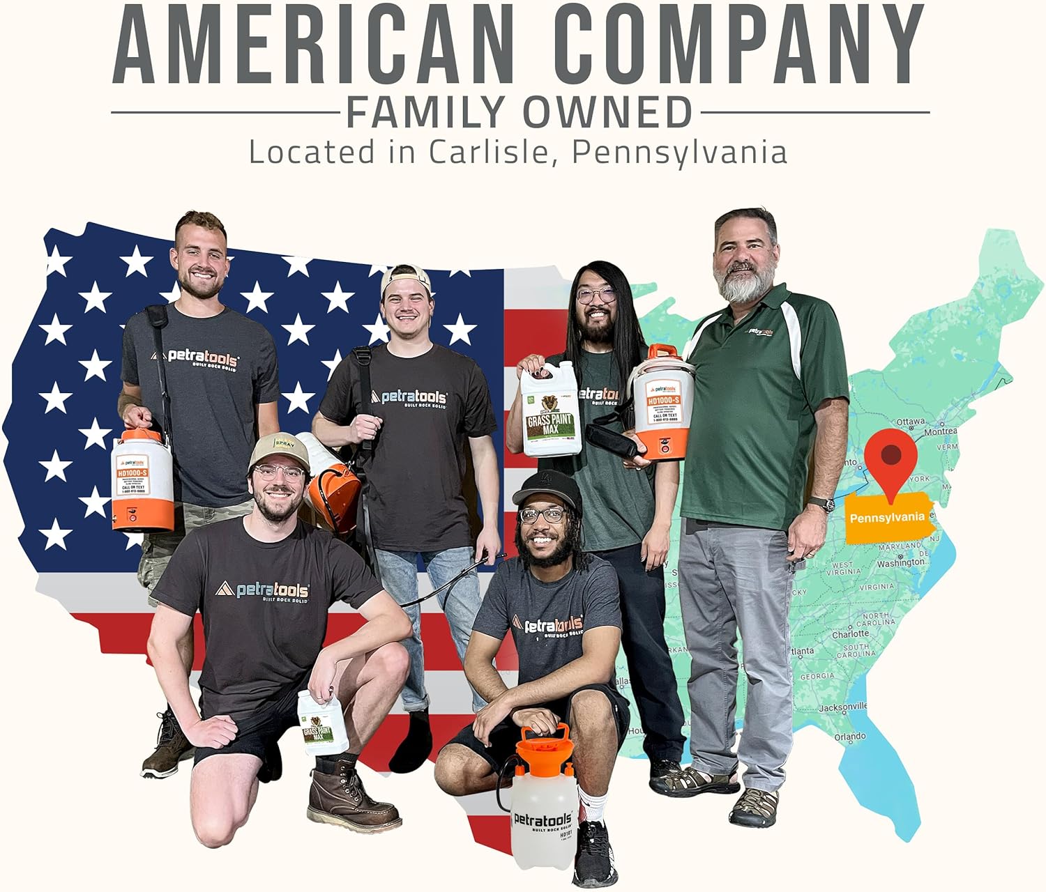 - American Family-Owned Company & USA Support: PetraTools is a USA-based company located in Carlisle, Pennsylvania. All PetraTools products have a 100% satisfaction guarantee and excellent USA customer service members waiting by the phone to answer any questions you may have. PetraTools continues to work hard to deliver top-quality sprayers & solutions to keep your home, lawn, and places of business clean, green, and safe.