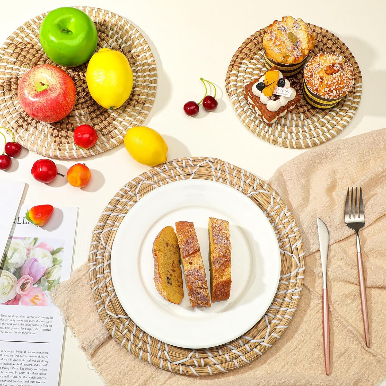 - Delicate Workmanship: woven wall decor is natural and hand woven, made of tan and white plastic cord, neutral colors are easy to match, each seagrass basket is finely handcrafted; When first opened, there will be a natural aroma, which will dissipate in a short time