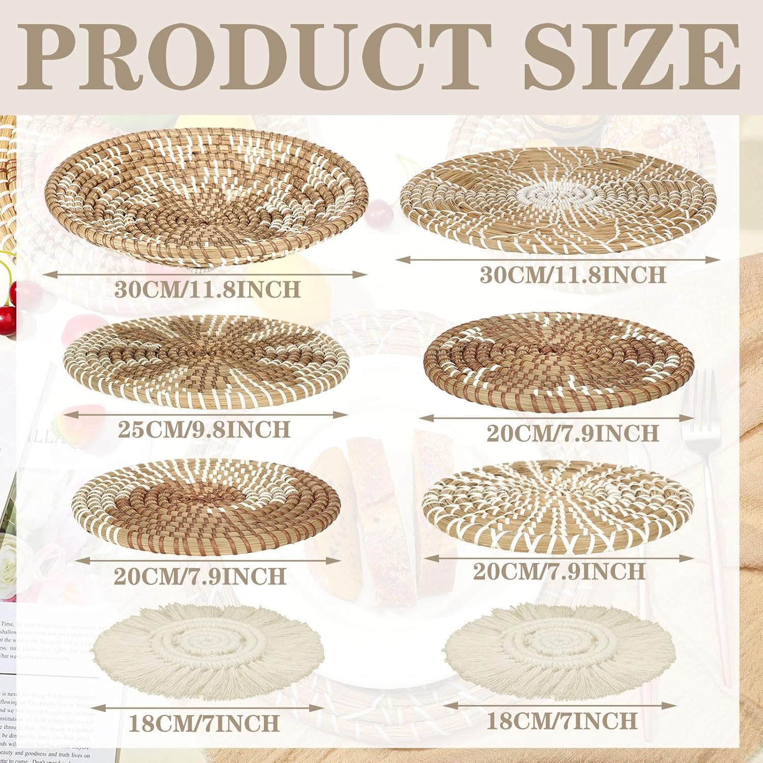 - Abundant to Choose: you will receive 8 pieces of woven wall baskets in different styles, the sizes vary from 7 inch to 11.8 inch, suitable for wall decorating use, the quantity and sizes are enough for your daily needs and replacement demands, you can mix and match them as you need, making your furnishing styles more attractive