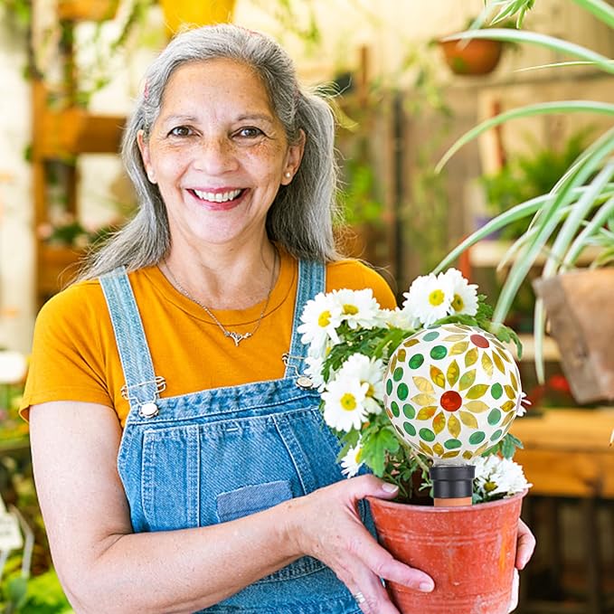 - Save Time:The large plant watering globes is made of mosaic globes and terracotta clay. Self waterer spikes size is 9.88''x4.4''.Terracotta watering spikes work through osmosis to moisten the soil and the plant root.