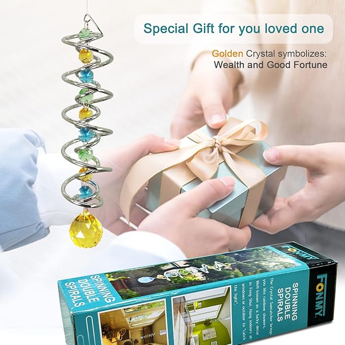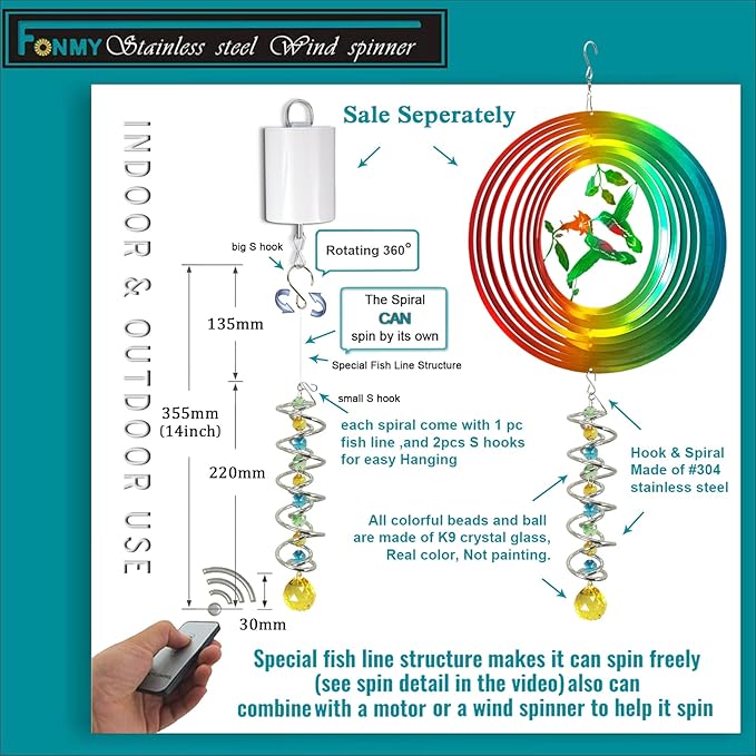 - 【PREMIUM CRYSTAL SUNCATCHER】The spiral with crystal is a special sun catcher rainbow maker, it’s Super Sparkly under sunshine. You can also add a motor(not include) to let the spiral to spin ,while spiral tail rotating (it can’t spin by itself.), the crystal ball seems to move up and down like floating and dancing in air, presents the magical visual illusion.