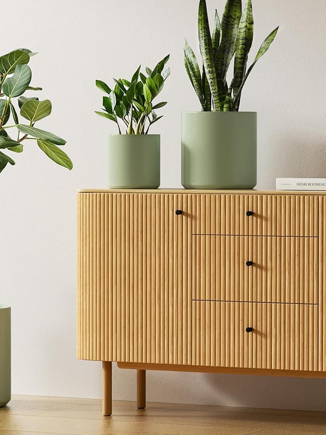 - Multiple Sizes: This collection includes planters in three dimensions; large (10 inch diameter and 10 inch height), medium (8 inch diameter and 8 inch height), and small (6 inch diameter and 6 inch height); suitable for a variety of indoor plants such as snake plants, African violets, moss poles; the spacious design ensures ample room for your plant companions to thrive and flourish in a healthy environment