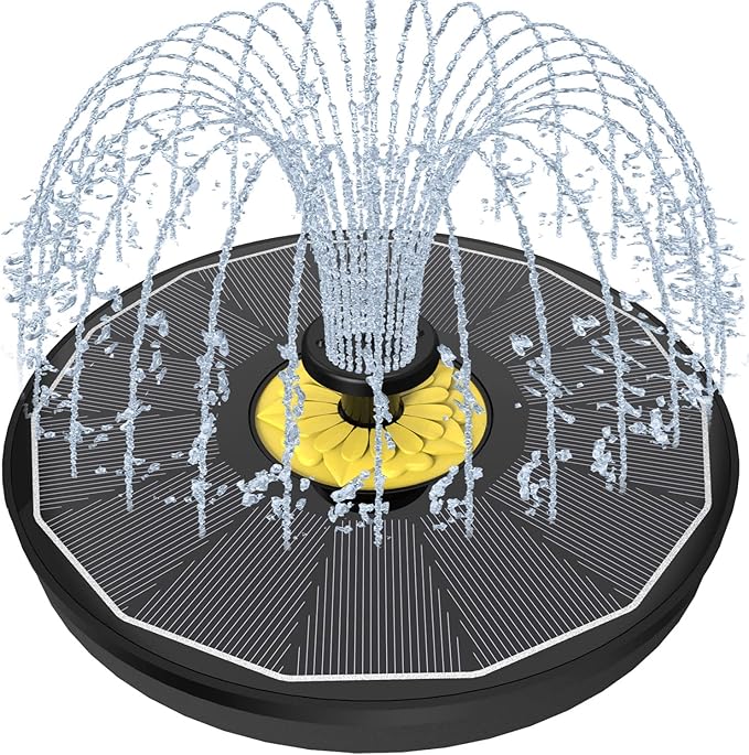 - Elegant Design:This solar powered fountain pump is both functional and stylish;Its yellow centerpiece design resembles a blooming flower,adding a touch of beauty to any garden or outdoor space
