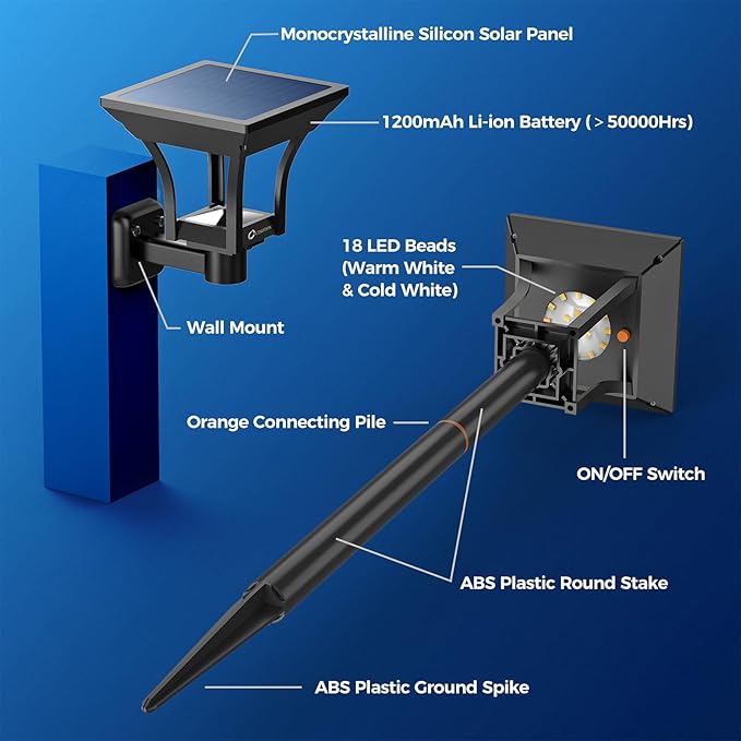 - 【2 Easy Installation Styles】No wiring or tools required. Simply stake these solar LED landscape pathway lighting into the ground or mount them on the walls in no time. No matter which installation method is used, the displayed pattern effect is sure to be amazing and attractive which can create a warm and cozy mood when you come back.