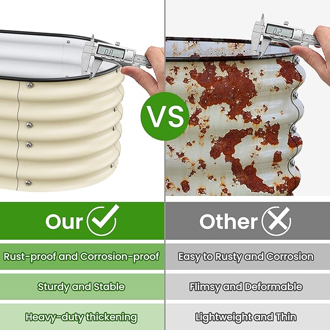 - Long-Lasting Quality:The garden beds are made of zinc aluminum-magnesium steel for durability. This advanced material is more resistant to corrosion and rust than traditional galvanized materials. Lasts 2-6 times longer than traditional galvanized raised beds, far longer than wood raised garden bed.