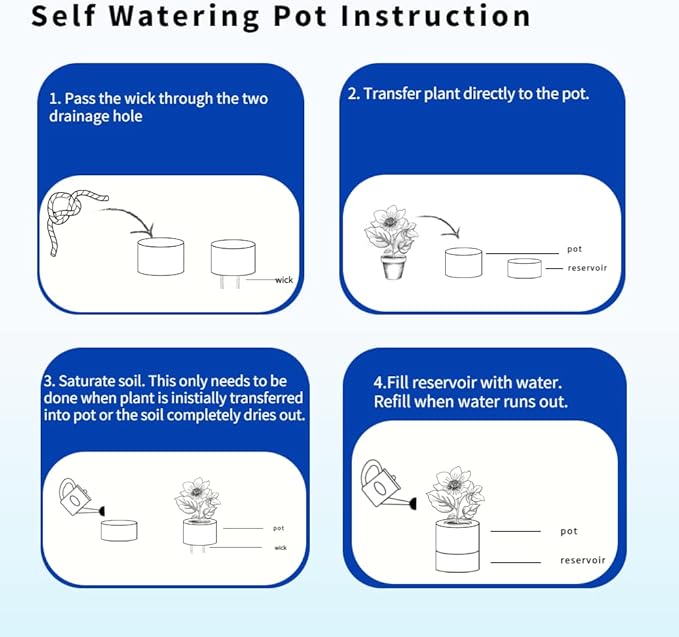 • The size for the wick is dia 8mm* Length 18mm which is suitable for all Nihow's pot for self-watering.No need to constantly water your plants as the wick absorbs water, providing a steady supply to the soil.