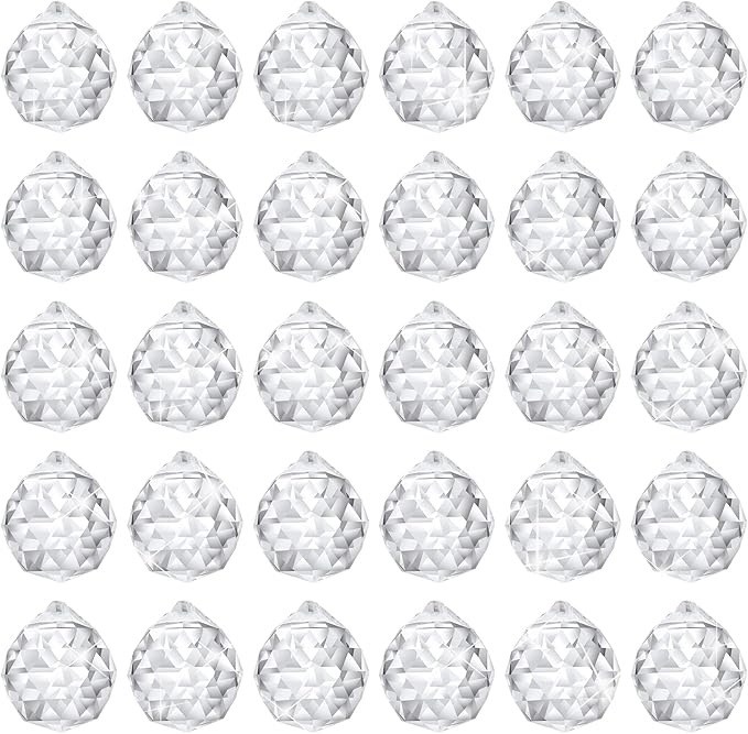 30 Pack Crystal Ball 20 mm Prism Suncatcher Sun Catchers Hanging Crystals Prisms for Windows Gift Feng Shui (Clear)
