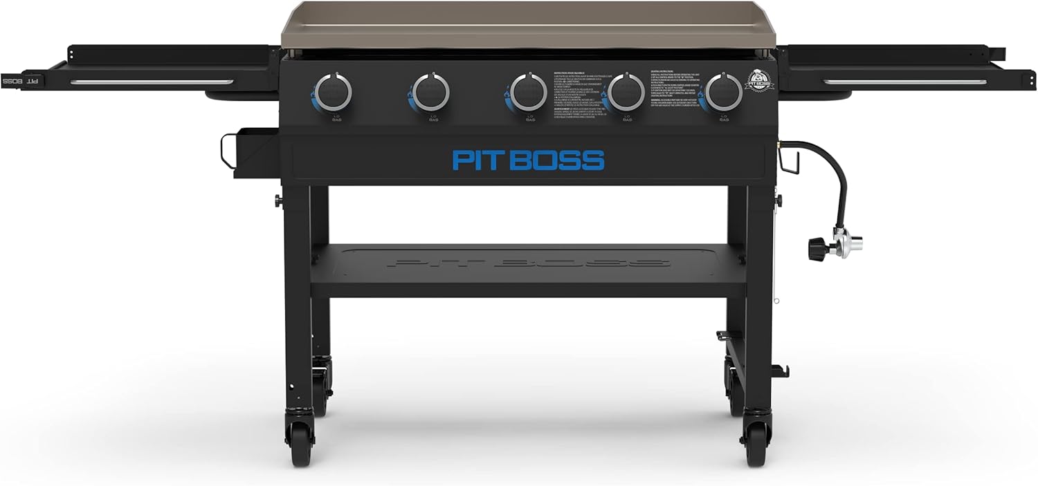 Pit Boss 11004 5-Burner with Folding Shelves Griddle, Black