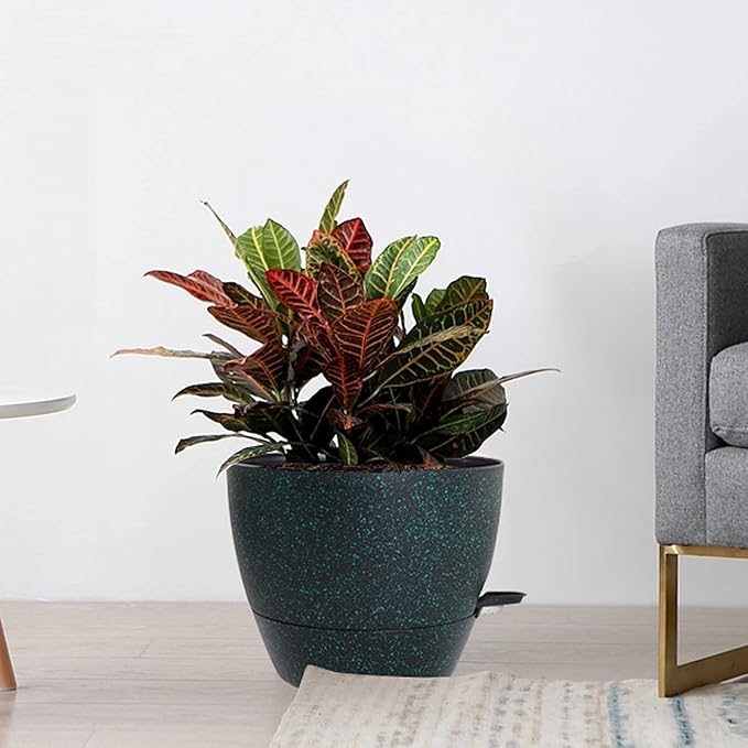 Large Self Watering Pots, 12/10/9 Plastic Planters with High Drainage Holes and Deep Reservoir for Indoor Outdoor Garden Plants and Flowers, Black with Green Speckles