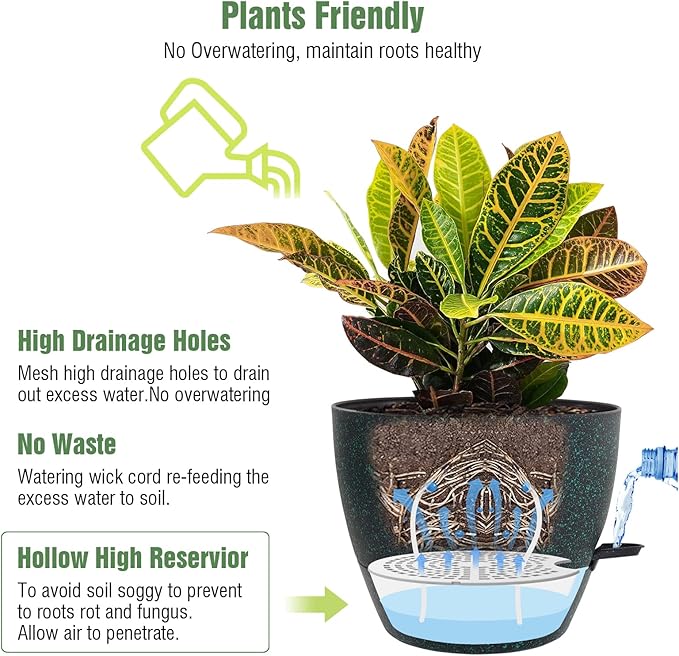 • Self Watering Feature: Removable watering feeder allows watering from bottom directly or watering from the top, preventing root rot.