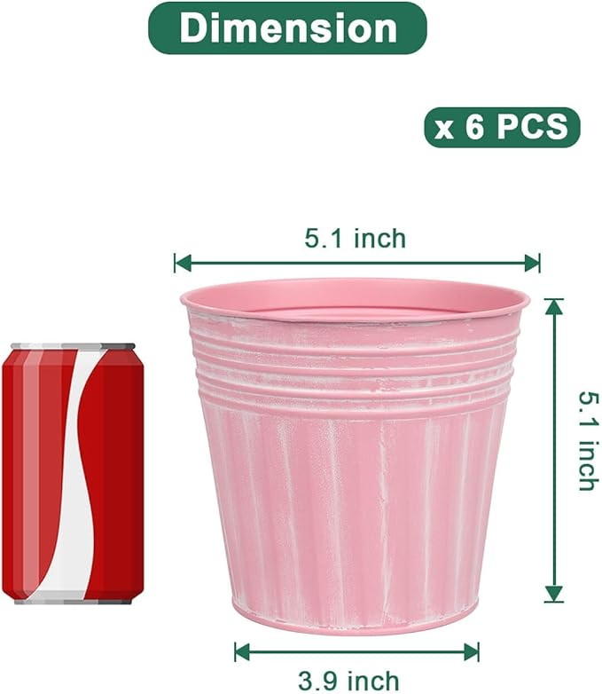 - 【Size of Metal Pots】There are 6pcs metal planters in a package, Topper opening diameter 5.1 inch, bottom diameter 3.9 inch, barrel high 5.1 inch.