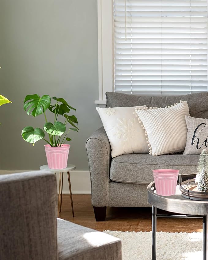 vensovo 5 Inches Pink Metal Rustic Flower Pots - 6 Pcs Small Galvanized Planters with Drainage Hole and Rubber Plug, Rustproof Tin Bucket Plant Pot Farmhouse Vintage Style for Decor
